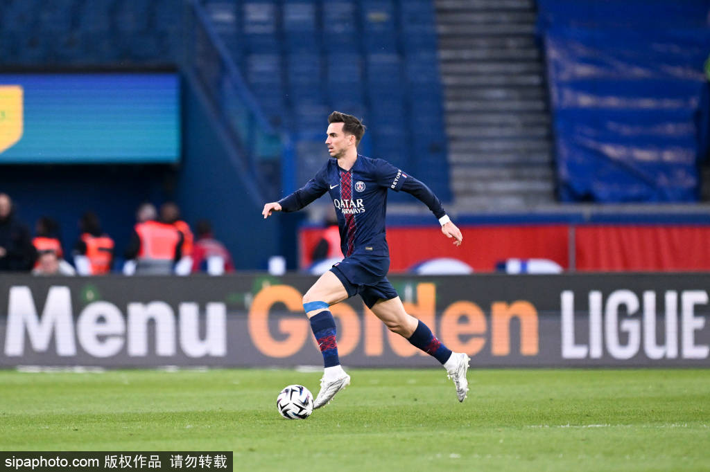 当地时间4月19日,在2025-2026赛季法国足球甲级联赛第30轮比赛中,巴黎圣日耳曼队主场1比2不敌里昂队。 4月19日,巴黎圣日耳曼队球员阿什拉夫·哈基米(左)和里昂队球员恩德里克在比赛中拼抢。 新华社发(亨利·施瓦茨摄)4月19日,巴黎圣日耳曼队球员马尤卢在比赛中。 新华社发(亨利·施瓦茨摄)4月19日,巴黎圣日耳曼队球员帕乔(左...